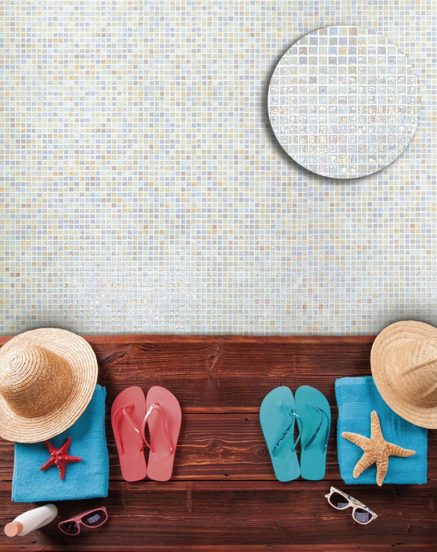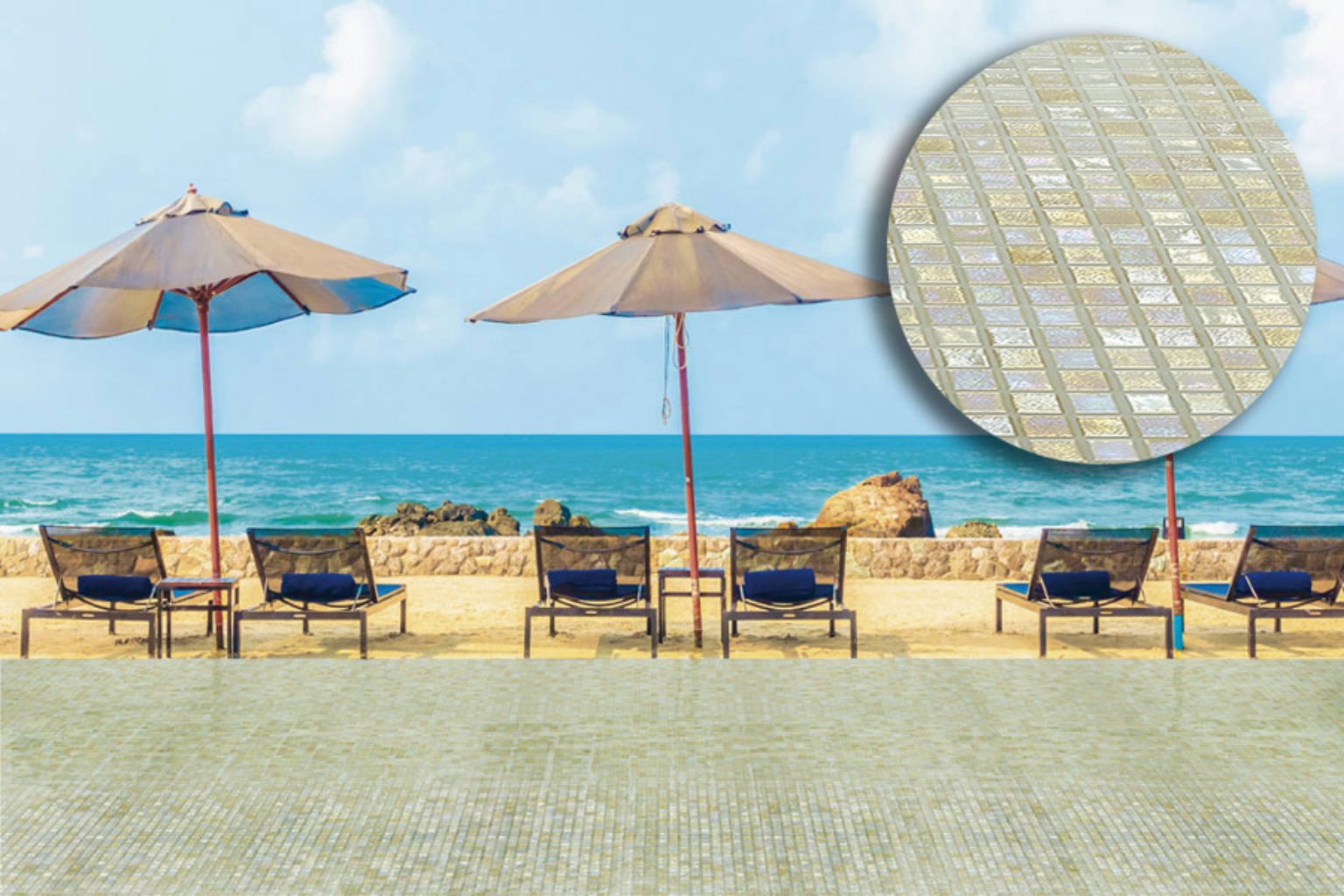 La mosaïque Iridis est parfaitement adaptée aux environnements humides et immergés. Elle convient pour :